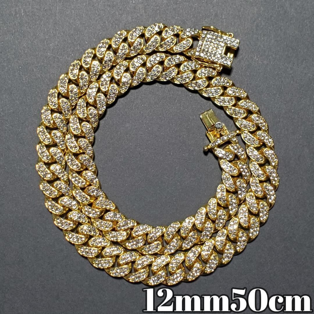 18kgpマイアミキューバンチェーンネックレス12mm50cm 喜平 ゴールド