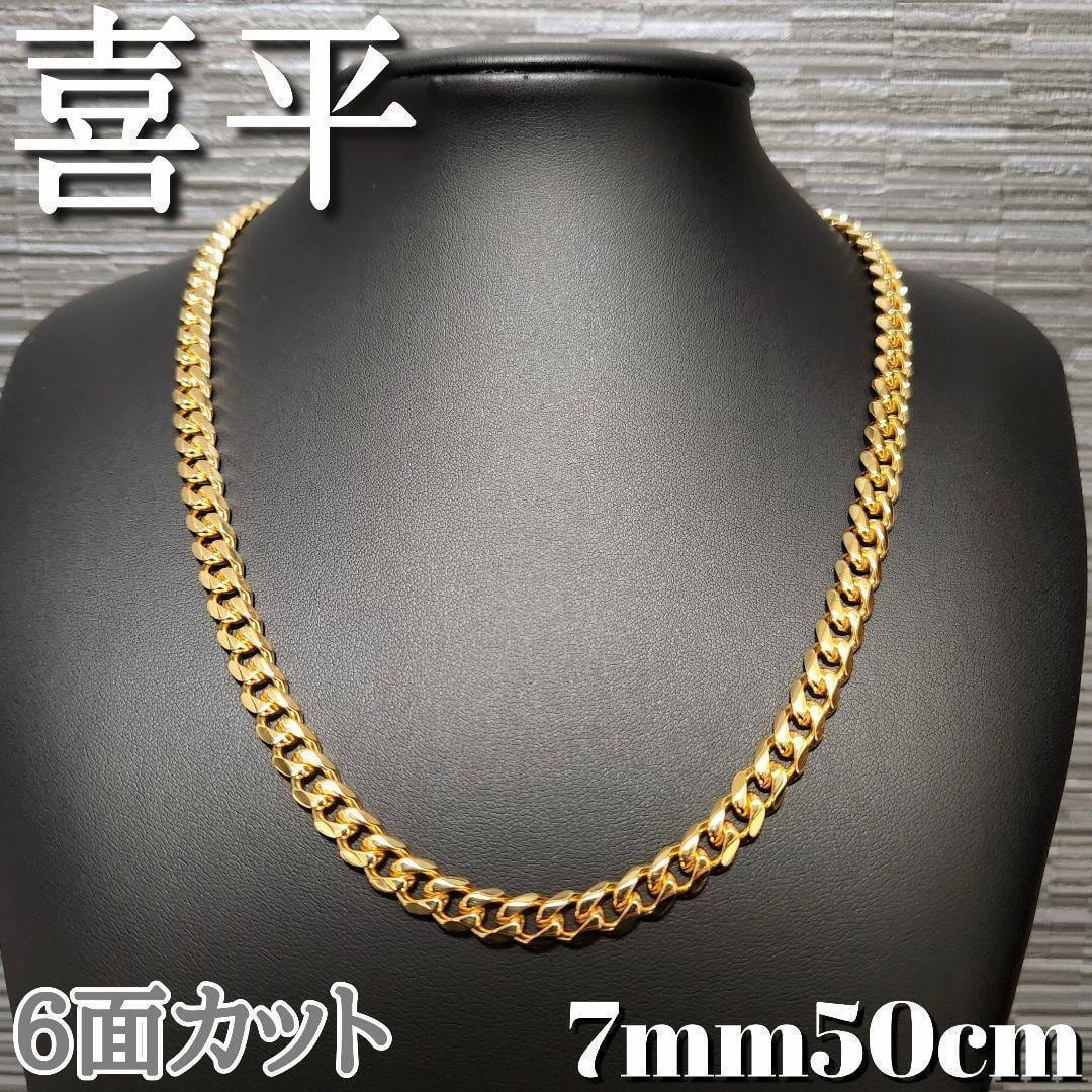 6面 7mm50cm 喜平チェーンネックレス 18kgp