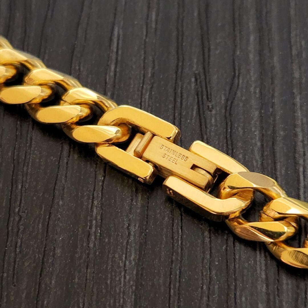ステンレスに18金をコーティングしており綺麗な輝きがあります。