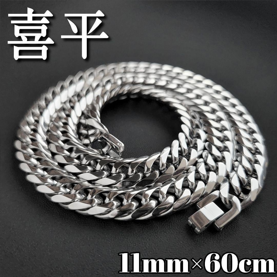 6面ダブル 喜平チェーンネックレス 11mm60cm シルバー 鏡面