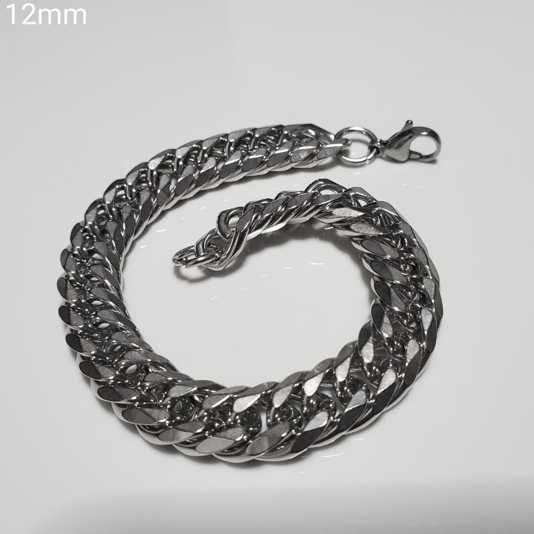 6面ダブル 喜平チェーンブレスレット 12mm21cm ステンレスシルバー