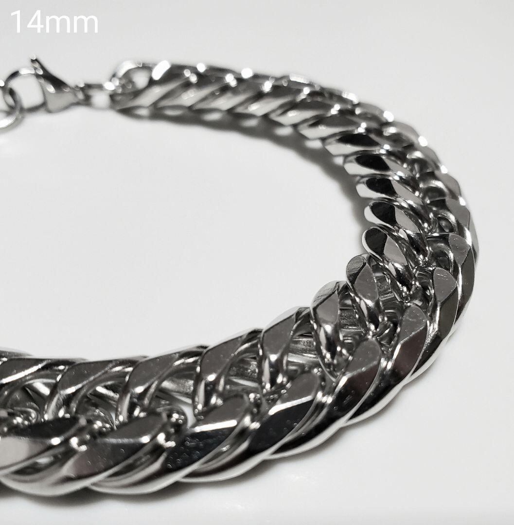 6面ダブル 喜平チェーンブレスレット 14mm21cm ステンレスシルバー