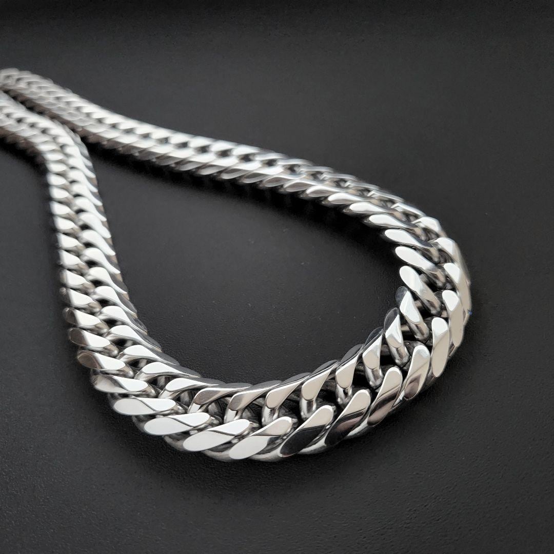 極太 6面ダブル 喜平チェーンネックレス 15mm60cm 鏡面 シルバー